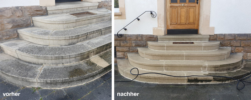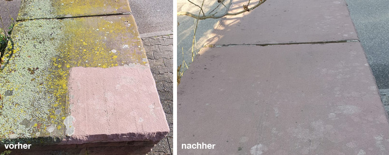 Oft werden als alternative Steinreiniger "Hausmittel" wie Soda, Essig, Schmierseife oder Natron zum Steine reinigen und entfernen von Algen, Flechten und Moos empfohlen. Dabei ist jedoch Vorsicht geboten, da diese Mittel oft die spezifische Gesteinsart sowie die jeweiligen Eigenschaften des Gesteins nicht ausreichend berücksichtigen. _*Wir empfehlen Ihnen keine Haushaltsmittel auf ihre Steine zu nutzen da sie ihre Steine porös oder sogar kaputt machen können darum setzen Sie sich mit uns in Verbindung und lassen sich von unserem Fachmann kostenlos beraten