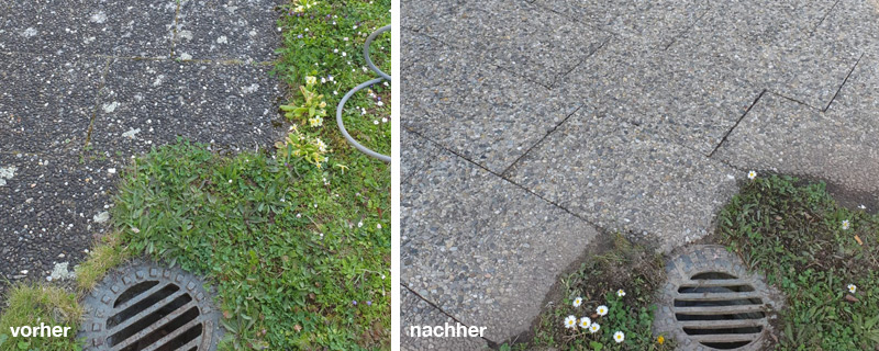 Organische Verunreinigungen werden durch Flechten, Pilze, Moose, Algen, Unkraut und Wildwuchs verursacht und können in der Regel mit unsere Maschinen entfernt werden